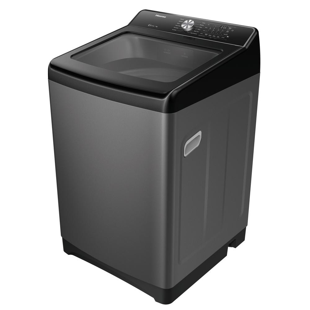 $538.00-HISENSE Top Load Washing Machine, -Capacity 17Kg -Memory & Fuzzy Functions -Rear control -Child lock -Tube clean -Easy clothing door -Spin Speed 700Rpm -12 Programs -Extra Soft Program -Soft Close Tempered Glass Door -Auto Restart -Smart Water Control Technology -Color: Titanium -Dimensions (HxWxD): 1120 x 690 x 700 mm