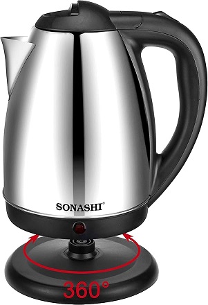 *Product Specification: Sonashi 1500W 1.8L stainless steel water kettle comes with a power on/off light indicator for convenient use. It works on a low power requirement of 220-240V and 50/60Hz.